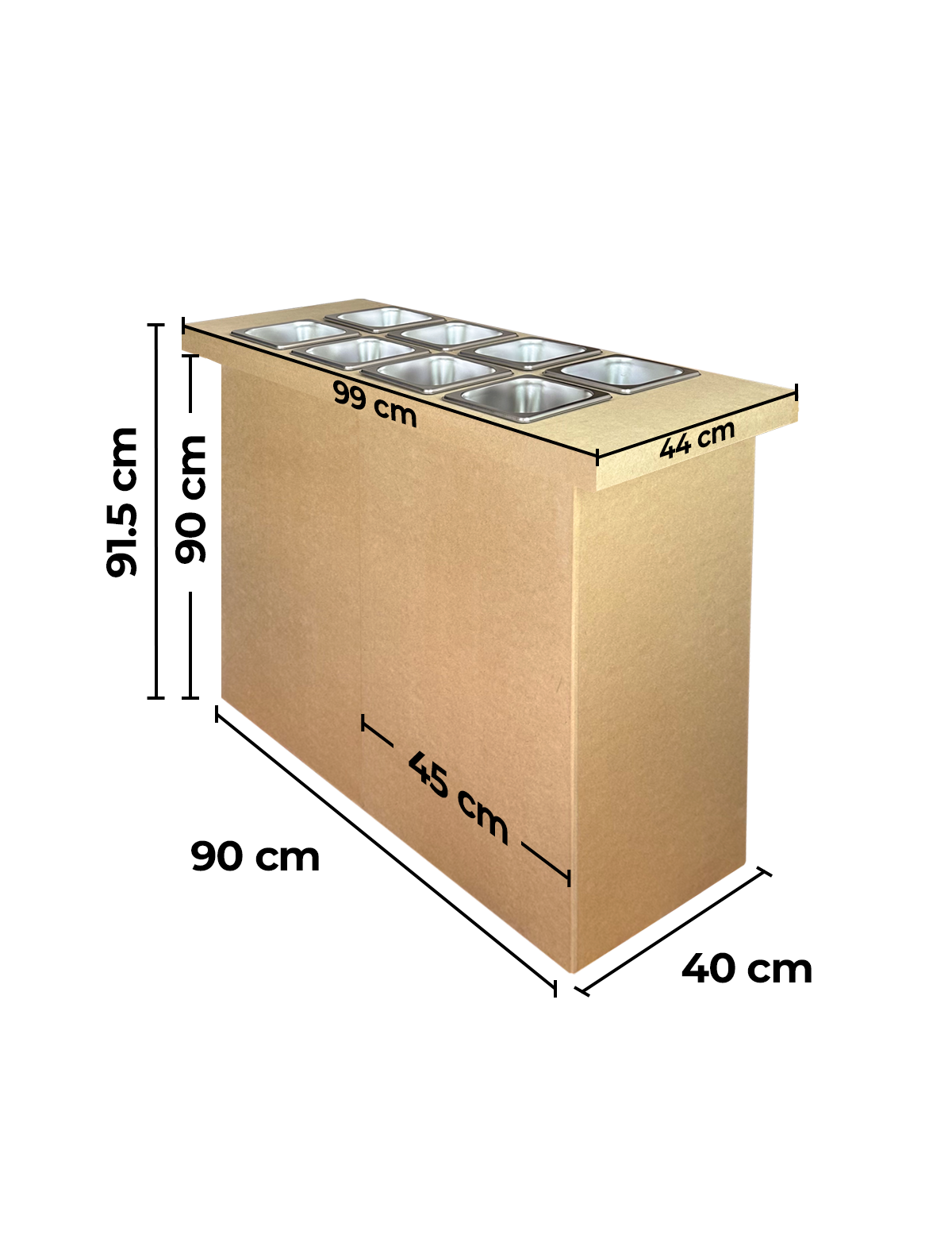 Medidas de la mesa de snacks barra ya ensamblada: 91.5 cm de alto x 99 cm de largo x 44 cm de fondo
