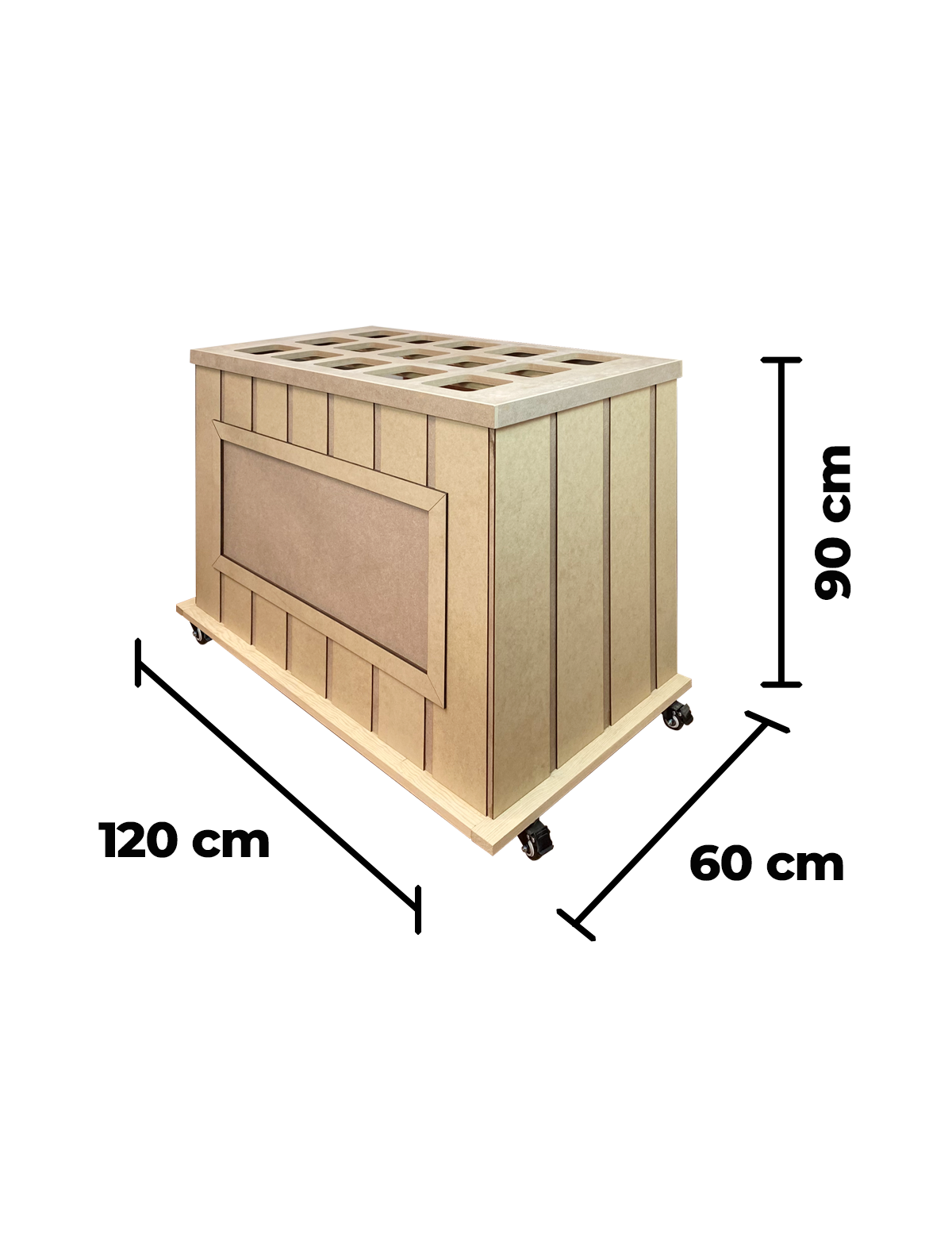 – Tamaño largo 120cm x ancho 60cm x alto 90cm (hasta la cubierta)
